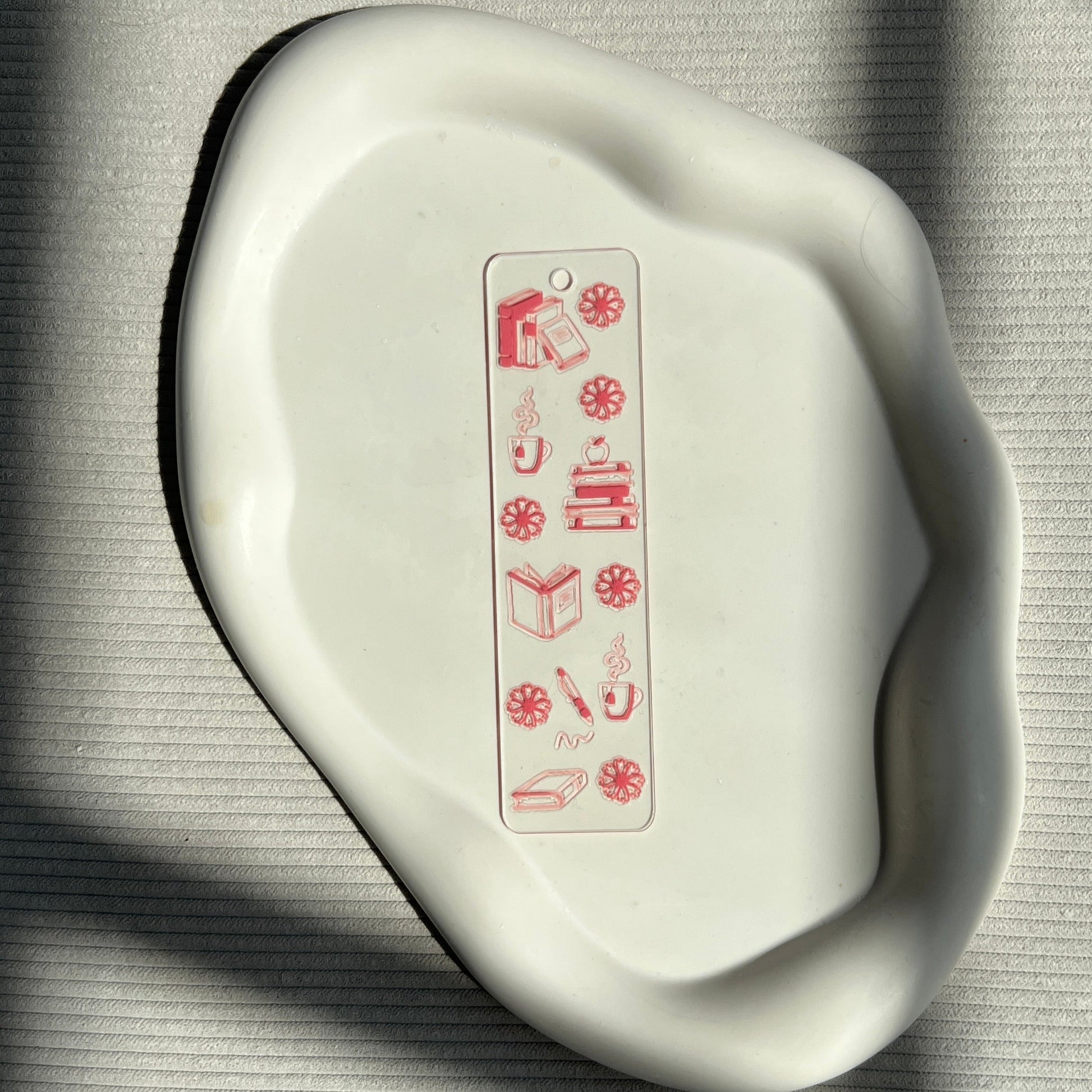 Trycket är nästan texturfritt, vattentåligt och tål daglig användning, vilket gör det till ett perfekt tillbehör för bokälskare.