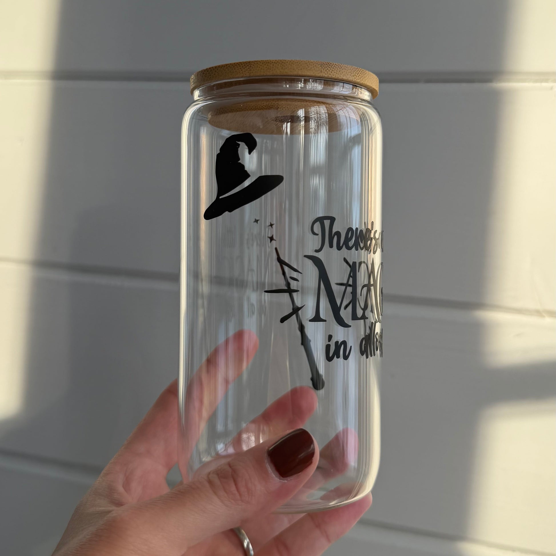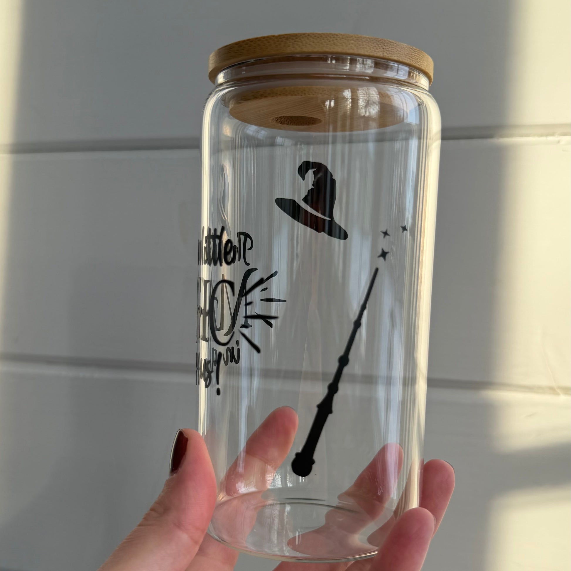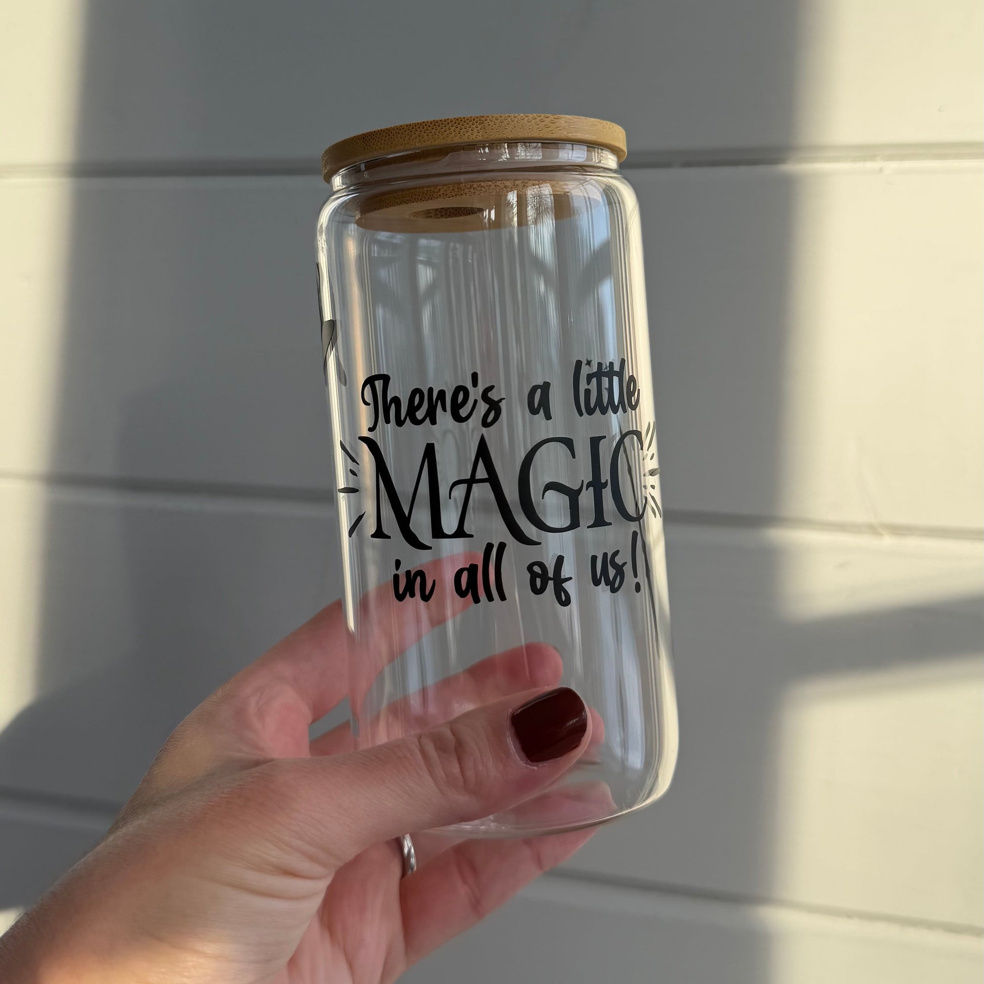 Glaset kommer med bambulock och ett glassugrör och är tillviss del vattentåliga.